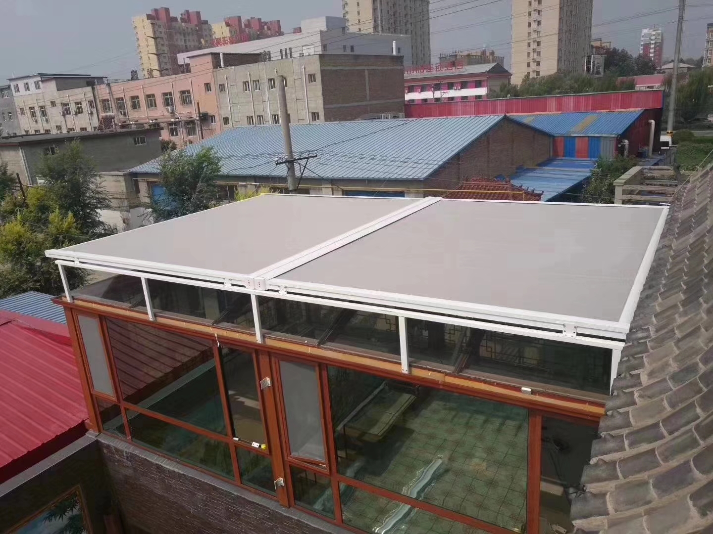 結(jié)構(gòu)骨架采用高強鋁合金/鋅合金/ABS樹脂制成。而螺栓和螺絲均由不銹鋼制成。若蓬幅過寬,可能引起整個結(jié)構(gòu)的輕微下垂。最大適用長度6.00米,最大適用伸出長度為6.00米,建議不要超出五米為最好。在所有的遮陽產(chǎn)品中,天幕遮陽蓬是陽光房的最佳拍檔。